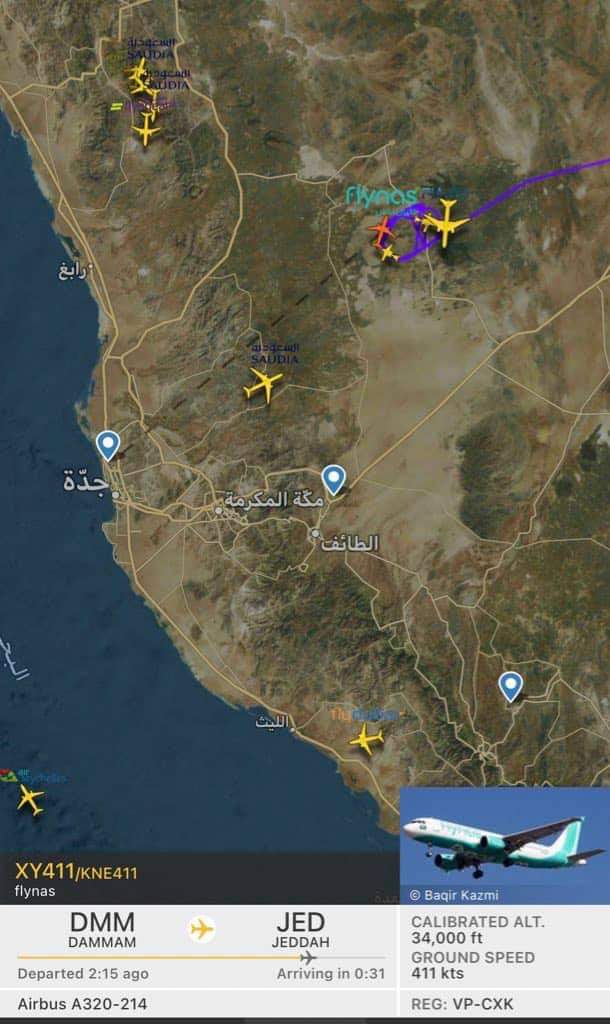وقالت المصادر إن حركة الملاحة الجوية في المملكة العربية السعودية توقف بشكل مفاجئ.