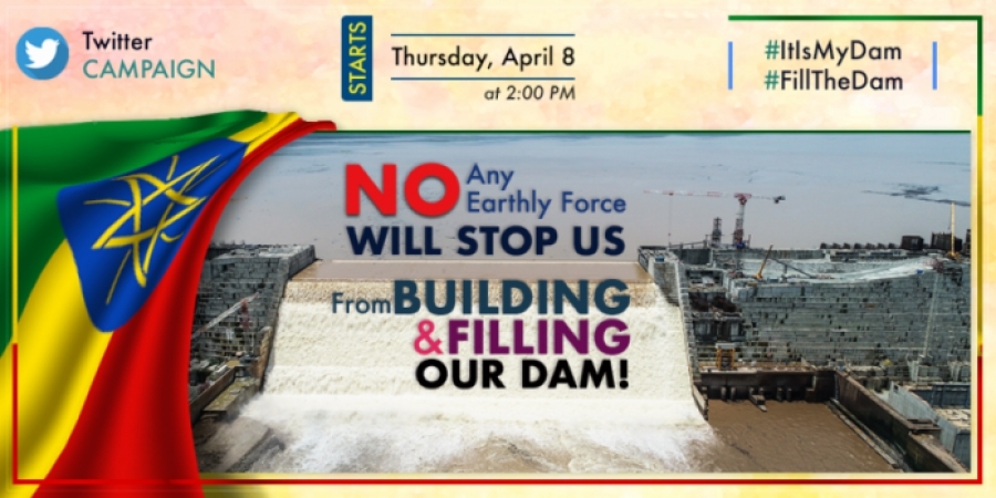 أعلنت وكالة الأنباء الإثيوبية إطلاق حملة عالمية على تويتر لدعم سد النهضة الإثيوبي تحت شعار: “لن تمنعنا أي قوة في الأرض من بناء سدنا وملئه!”.