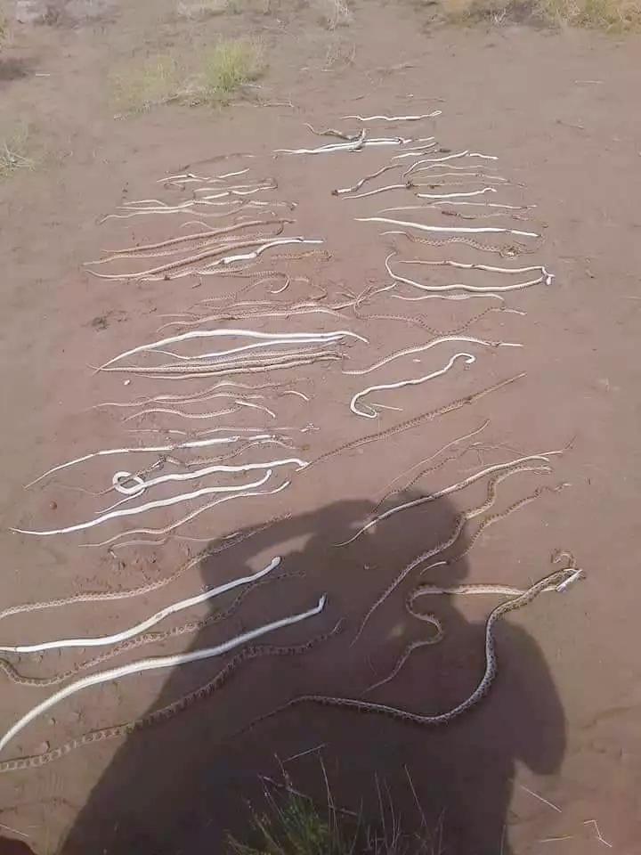 تتداول ناشطون عبر مواقع التواصل الإجتماعي صورة لعشرات الثعابين المقتولة والمرمية بالأرض في محافظة الحديدة شمال غرب اليمن.