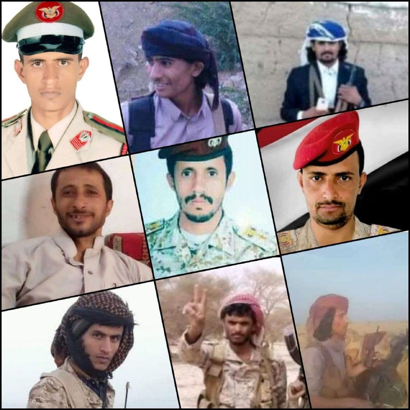 ومن بين الشهداء الذي تم الكشف عن هوياتهم عدد من قيادات وأفراد الجيش الوطني خلال الـ 24 الساعة الماضيه في جبهات غرب مدينة مأرب بينهم تسعة ضباط مبينة اسمائهم على النحو التالي:-