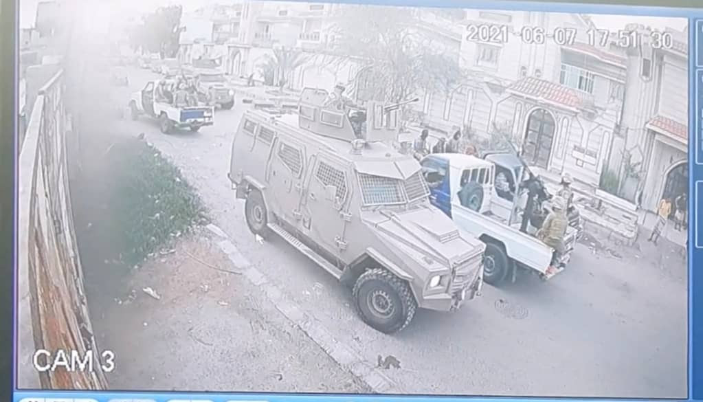 وقال الناشطون أن الصورة تظهر انتشار اطقم ومدرعة امام منزل اللواء فيصل رجب في حي ريمي .