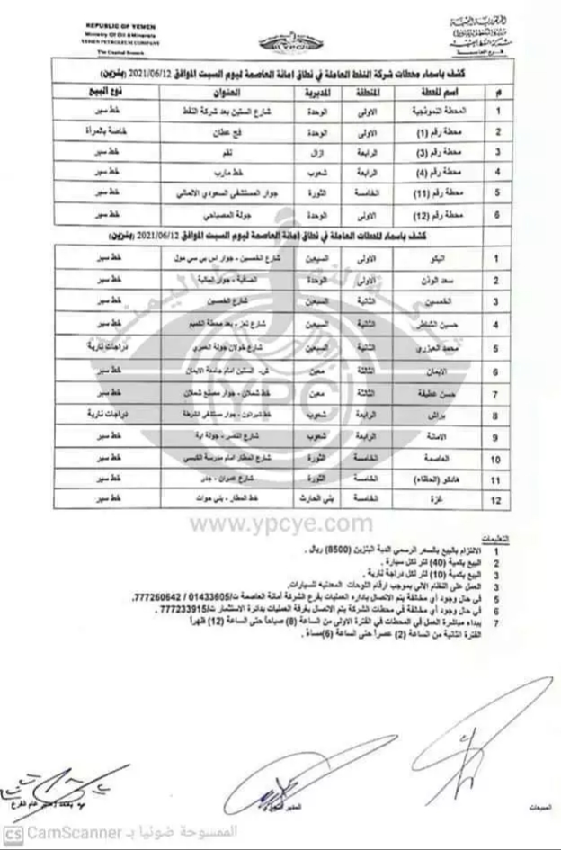 نشرت شركة النفط اليمنية في حكومة الحوثيين بصنعاء، كشوفات بأسماء المحطات المتوفرة فيها المشتقات النفطية.