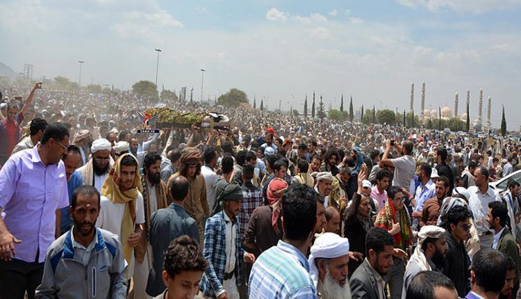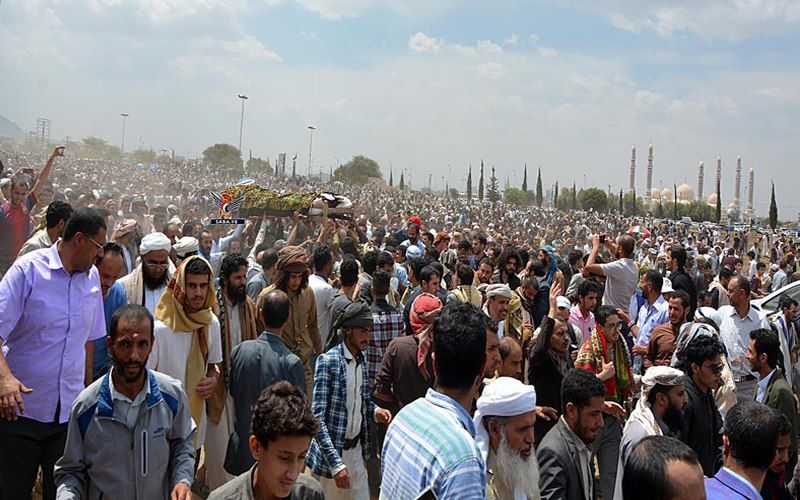 وخلال مراسم التشييع التي تقدّمها عددا من القيادات الحوثية ابرزهم عضو مجلس الحكم في صنعاء محمد علي الحوثي ورئيس مجلس القضاء الأعلى القاضي أحمد يحيى المتوكل ومفتي الحوثيين شمس الدين شرف الدين، وعدد من العلماء وأعضاء مجلسي النواب والشورى وسط حضور شعبي كبير أعرب المشيعون عن عميق الحزن لرحيل أحد أعلام اليمن والأمة الإسلامية.