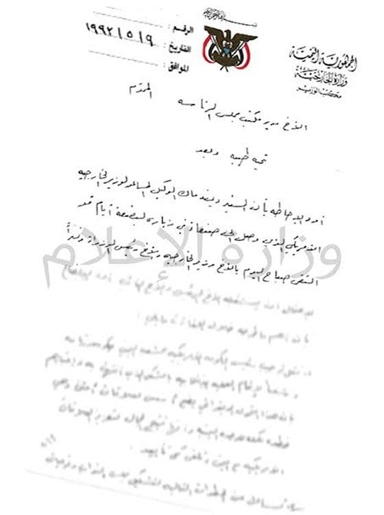 أزاحت وزارة الإعلام في حكومة الحوثيين بصنعاء الستار عن وثائق قالت أنها حول تعاطي نظام صالح بإيجابية مع التوجيهات الامريكية لإنهاء ماقطعة البضائع الإسرائيلية وتماهية مع ضغوطات واشنطن المتعلقة بالمقاطعة الاقتصادية.