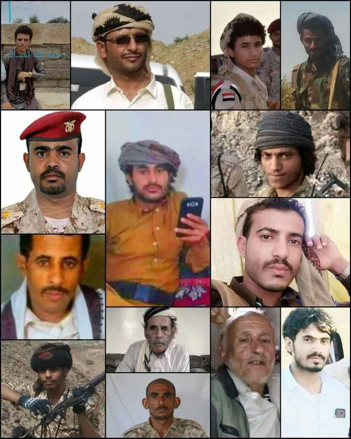 نشر ناشطون يمنيون على مواقع التواصل الاجتماعي صور مرفقة بقائمة مطولة باسماء شهداء الجيش الوطني الذين سقطوا خلال الساعات الماضية في مختلف جبهات مأرب بينهم قيادات ميدانية بارزة يتقدهم اللواء ناصر الذيباني رئيس العمليات الحربية للقوات المشتركة في مأرب.