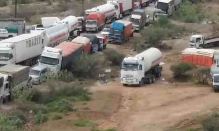 كما اوضحت صور تداولها ناشطون على مواقع التواصل الاجتماعي أن المئات من السيارات والشاحنات ومركبات النقل التجارية اضطرت للتوقف على جانبي الطريق، منتظرة السماح لها بالمرور منذ ثلاثة ايام.