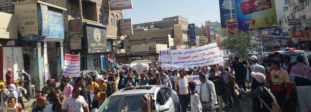 تظاهر المئات من ابناء محافظة تعز اليوم السبت احتجاجا على الأرتفاع المخيف لأسعار المواد الغذائية.