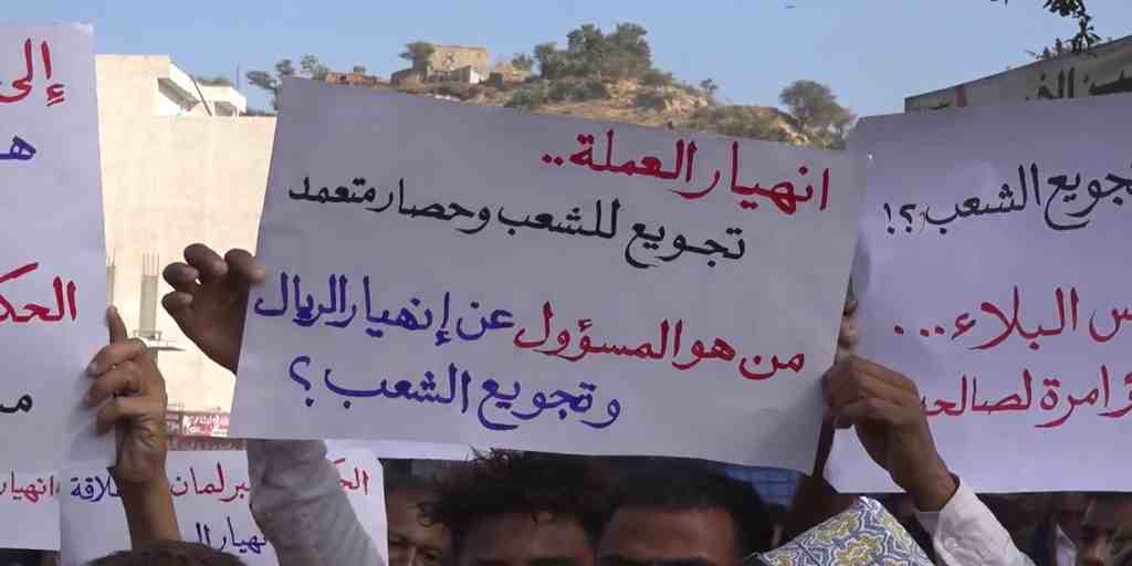وعبر المحتجون عن غضبهم على حكومة معين عبدالملك بعد أن وصل قيمة كيس الطحين الى ما يقارب 50 الف ريال.