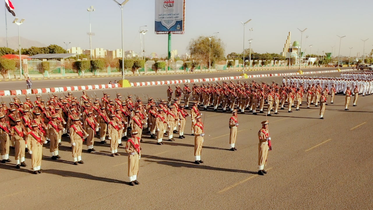 حيث نفذ الحوثيون اليوم بحضور محمد علي الحوثي وعبدالعزيز بن حبتور عرضاً عسكرياً كبيراً في ميدان السبعين بالعاصمة صنعاء ضم قوات بحرية متخرجة من الكلية البحرية العسكرية.