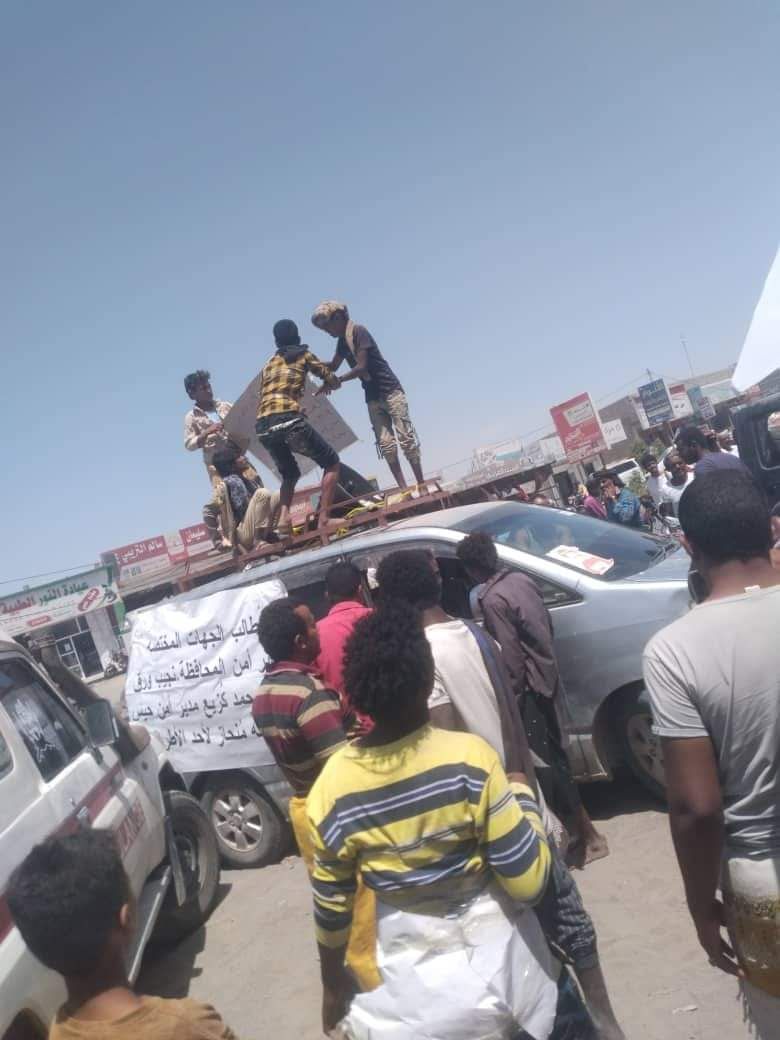 واتهم المحتجين الأجهزة الأمنية في مديريات الساحل بالتستر على القتلة والمجرمين والعصابات المسلحة التي تعبث بالأمن والاستقرار.
