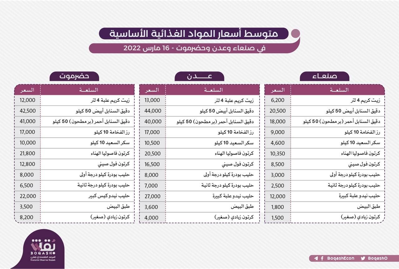 الاسعار في صنعاء وباقي مناطق سيطرة الحوثيين :