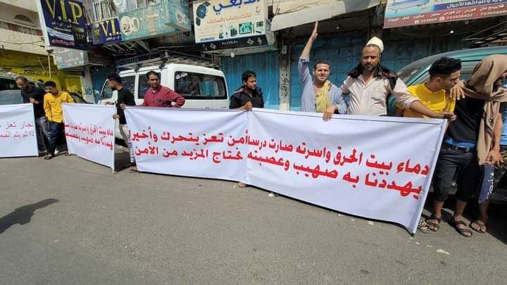 ومنذ ساعات الصباح الأولى، أغلق التجّار محلاتهم التجارية في عموم الشوارع الرئيسية وسط مدينة تعزّ – شارع التحرير ومحيطه، شارع الخياطين. شارع 26 والجملة – مطالبين بالقبض على العصابات المسلحة التي تفرض عليهم إتاوات ومبالغ مالية دون وجه حق.