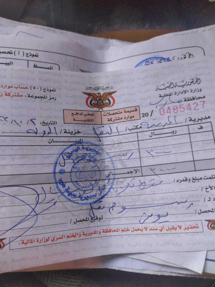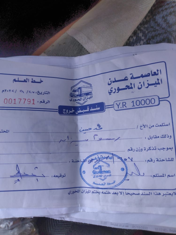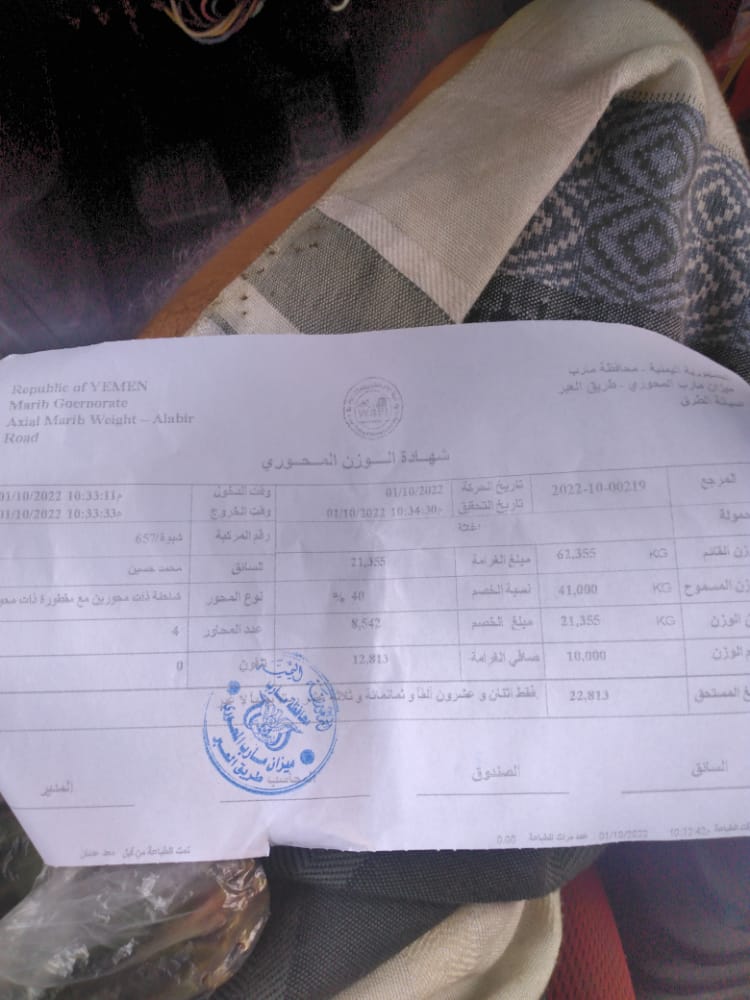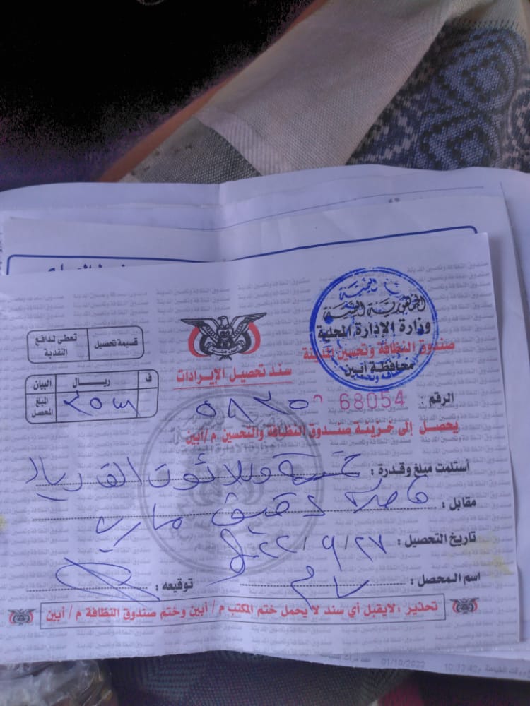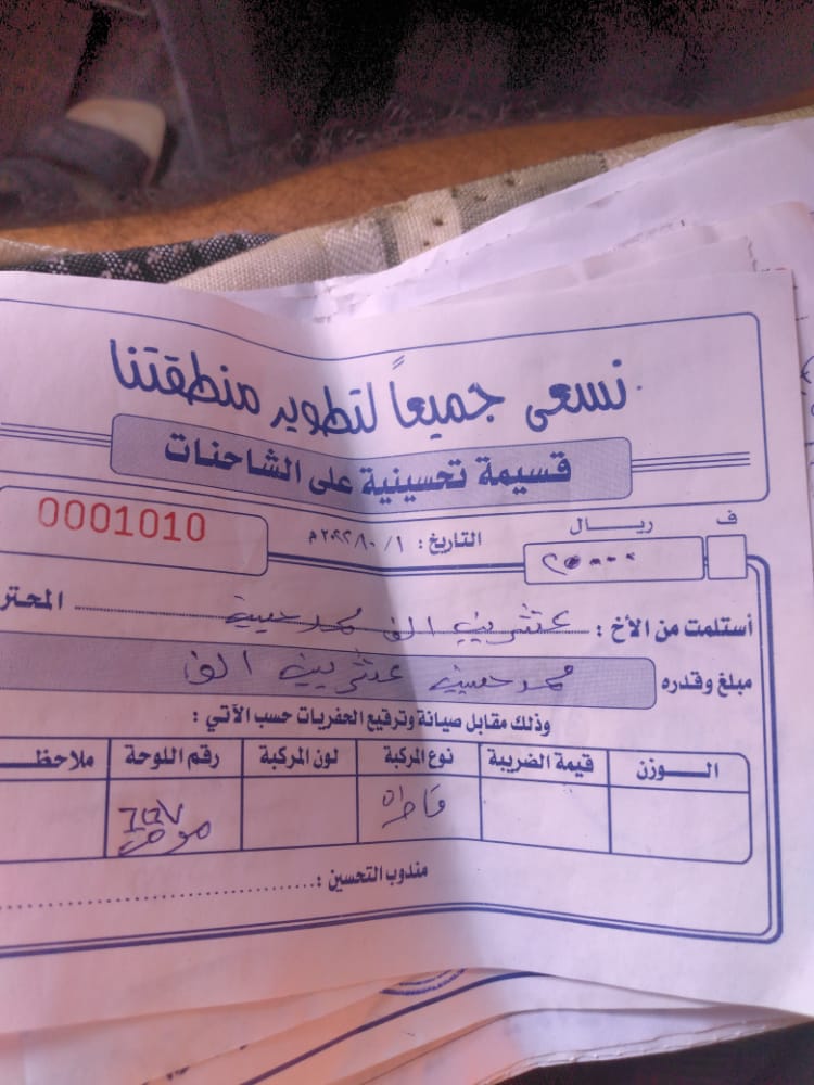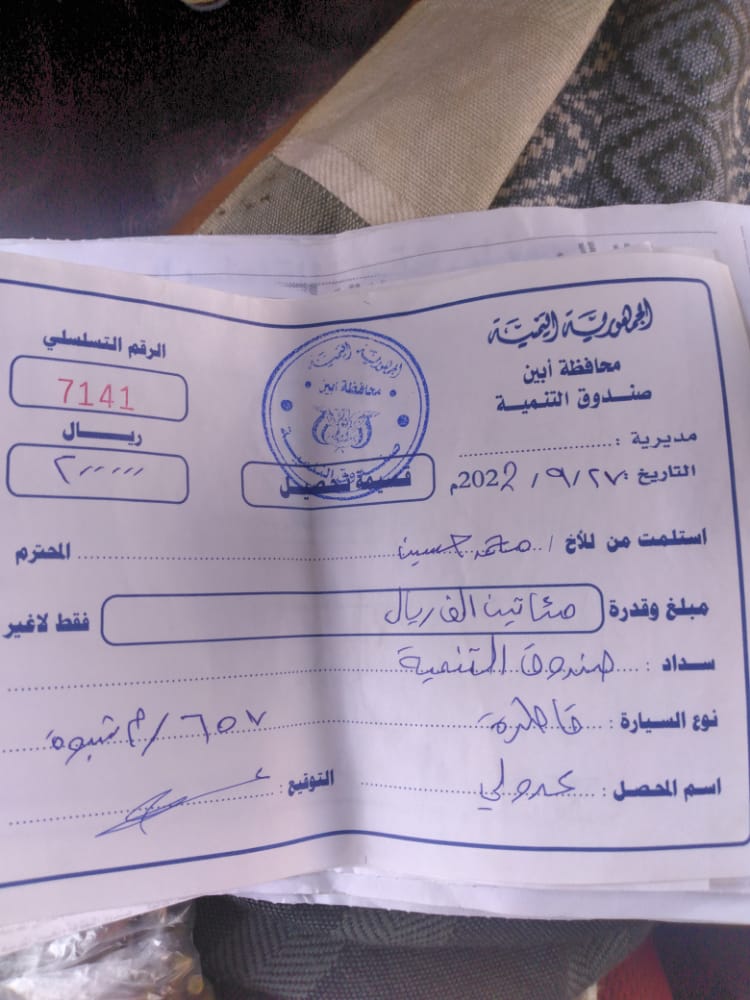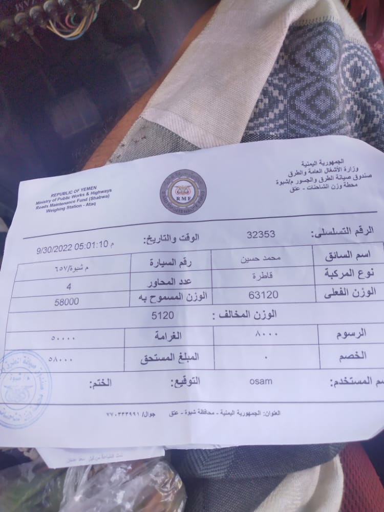 وانتشرت صور سندات تحصيل بمبالغ مالية ضخمة جداً لإحدى شاحنات النقل التي تعرضت لنهب جبايات باهظة تُفرض عليهم على امتداد الخط الواصل بين مدينة عدن وحتى مناطق يافع.